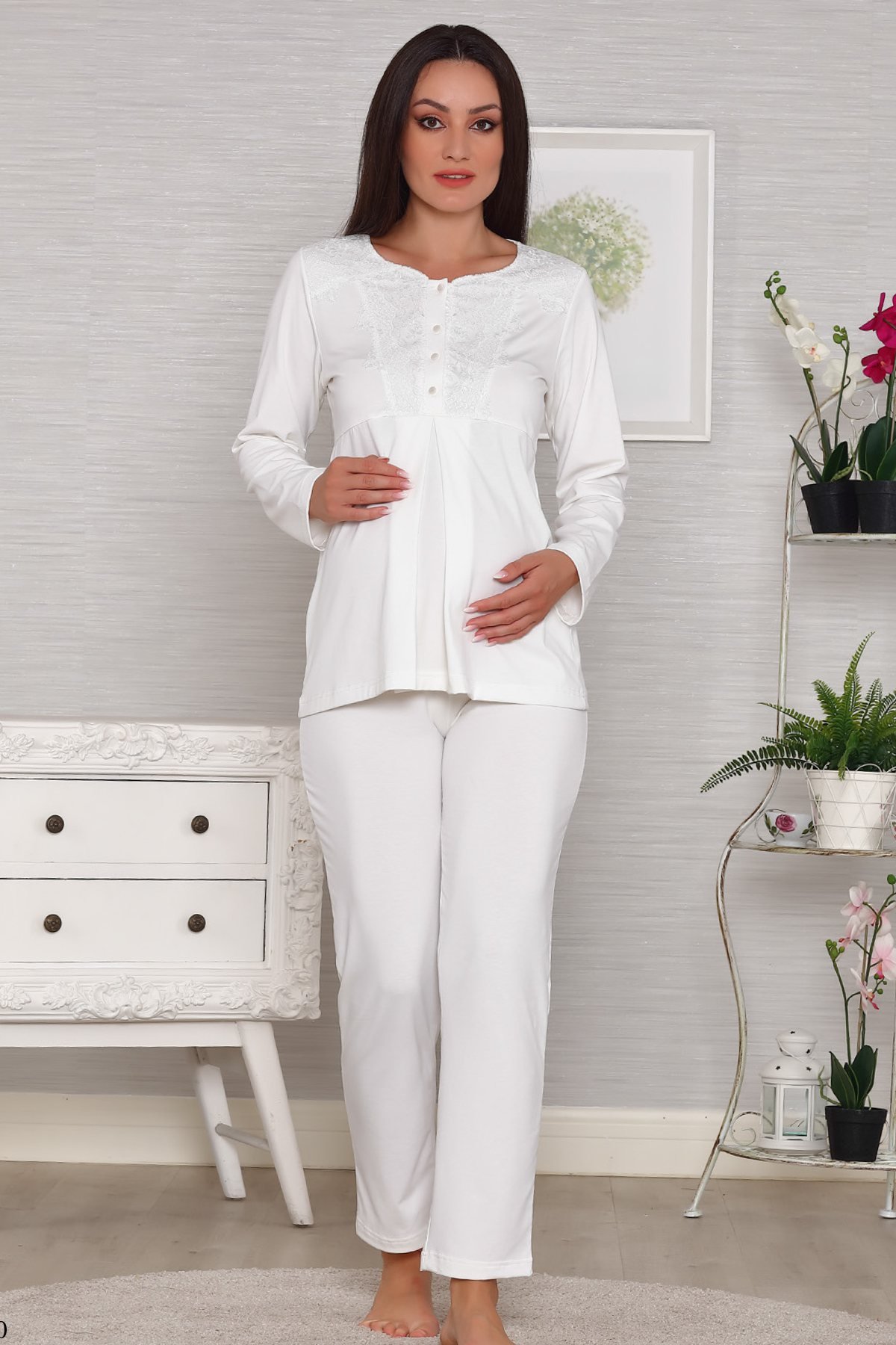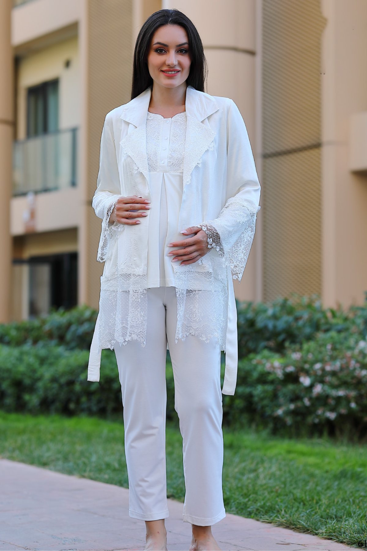 Tuba 563 - 3 lü Sabahlıklı Hamile Lohusa Pijama Takım, Sabahlıklı Hamile Pijaması