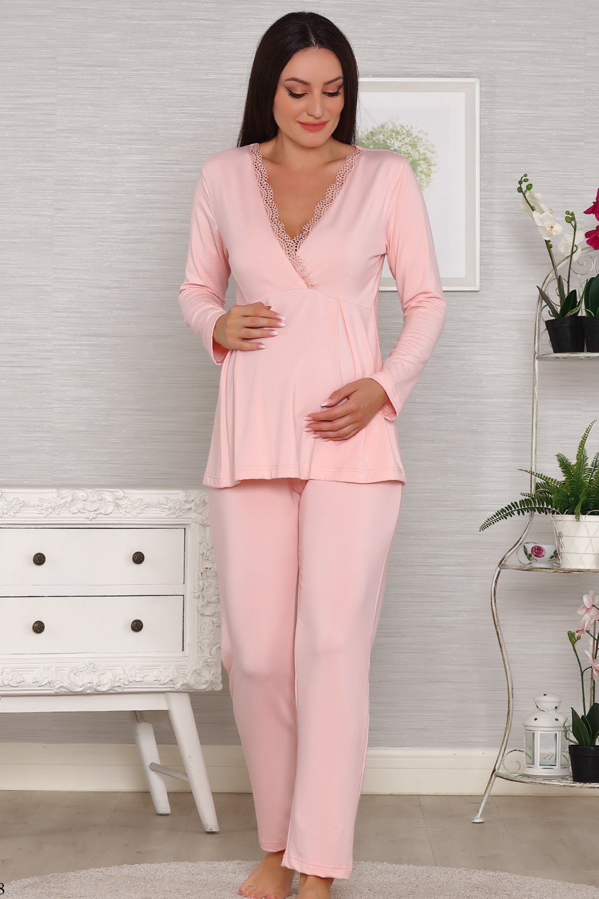 Tuba 565 - 3 lü Sabahlıklı Hamile Lohusa Pijama Takım, Sabahlıklı Hamile Pijaması