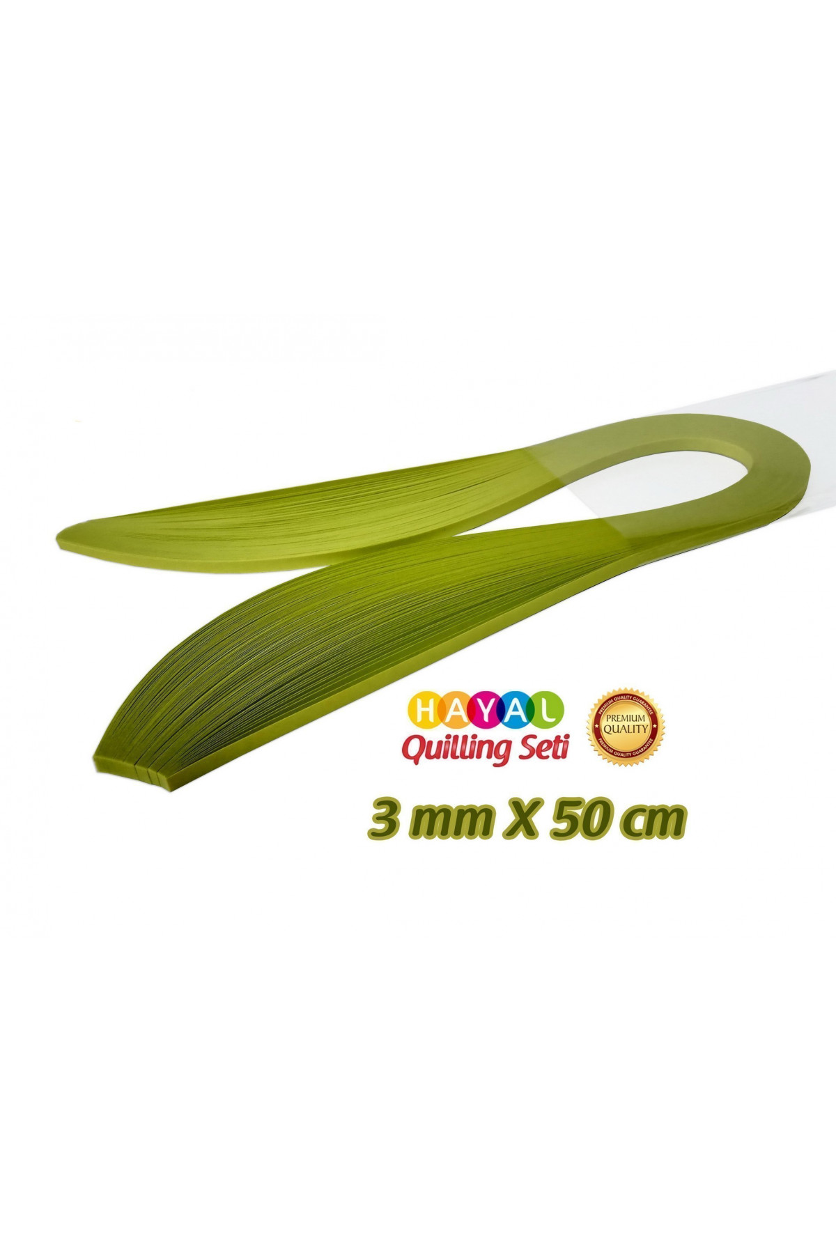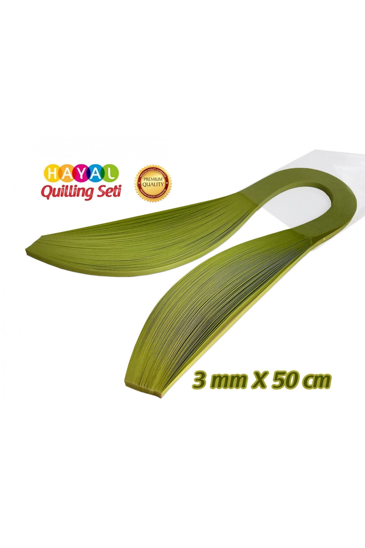 Set içerisinde;3mm x 50 cm ebatlarında,Haki Yeşili Renkli,100 adet kağıt şerit bulunmaktadır.Hayal H..