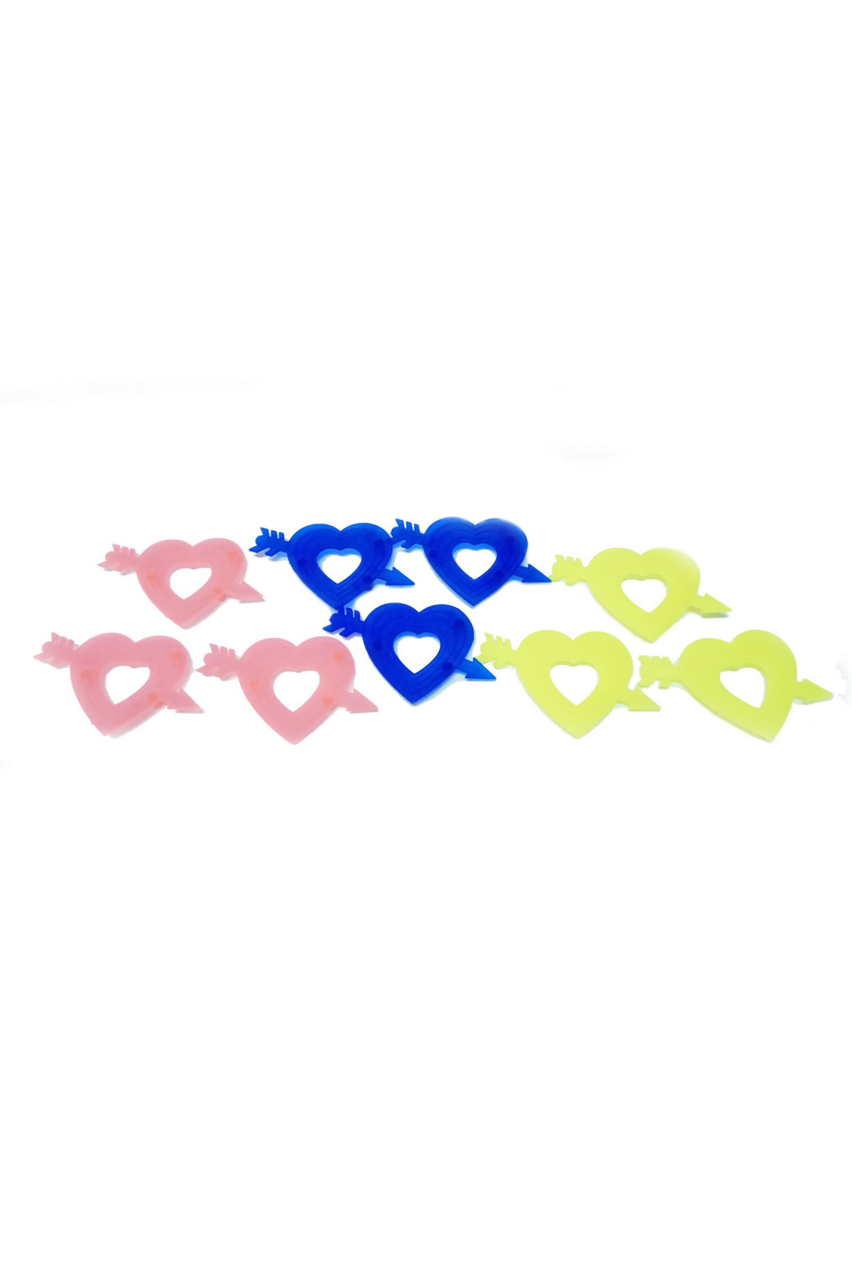Ürün Kalp şeklinde 3 farklı renkte ve 3 er adetten toplam 9 adet jant süsü içermektedir.