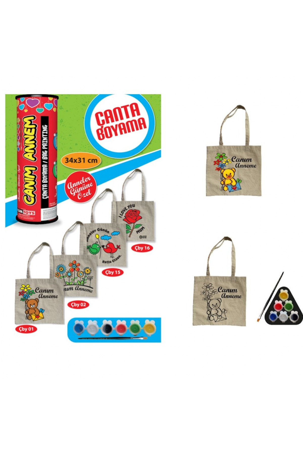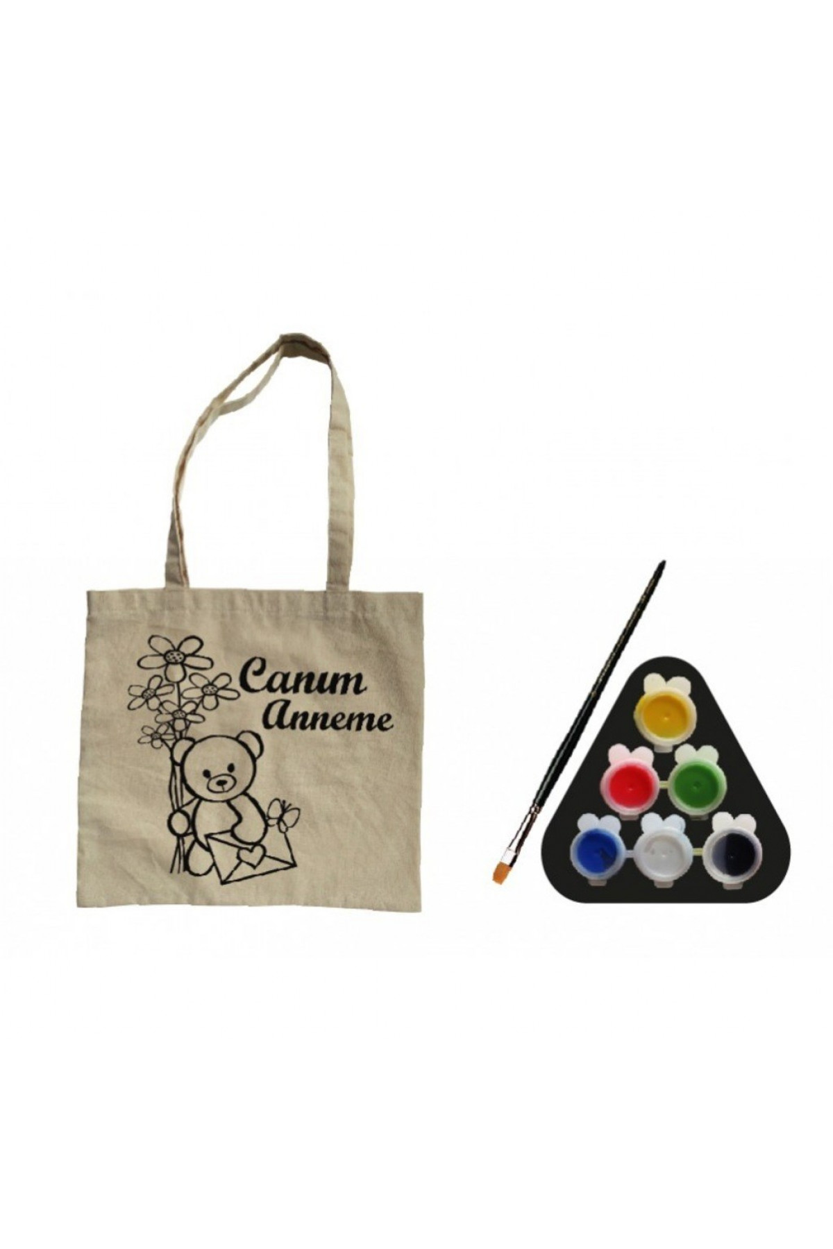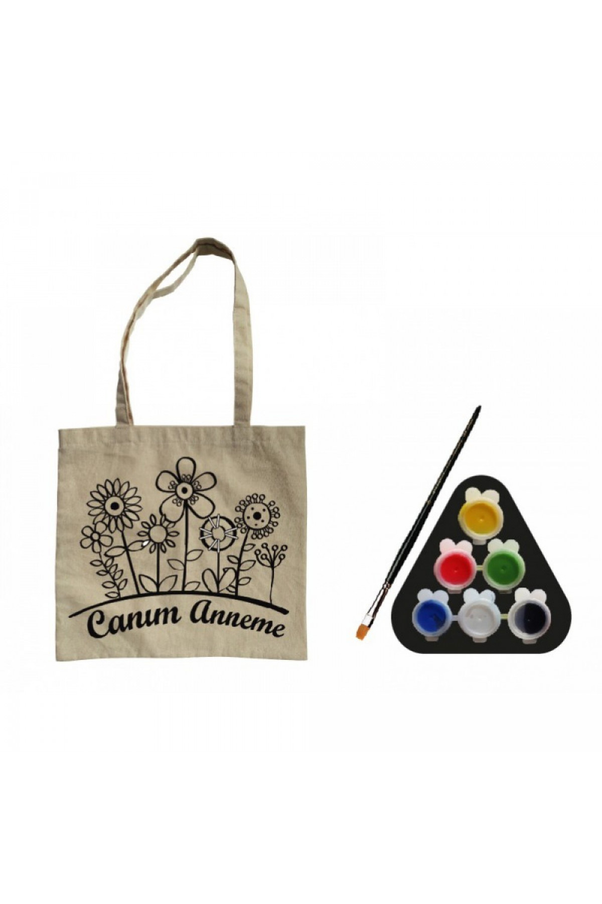 Çanta Boyama baskılı çanta, 6 renk akrilik boya ve fırçadan oluşan bir settir. Çanta Boyama çocukların hem el becerilerini geliştirmeleri hem de annelerine hediye edebilecekleri sağlığa zararsız bir materyaldir.