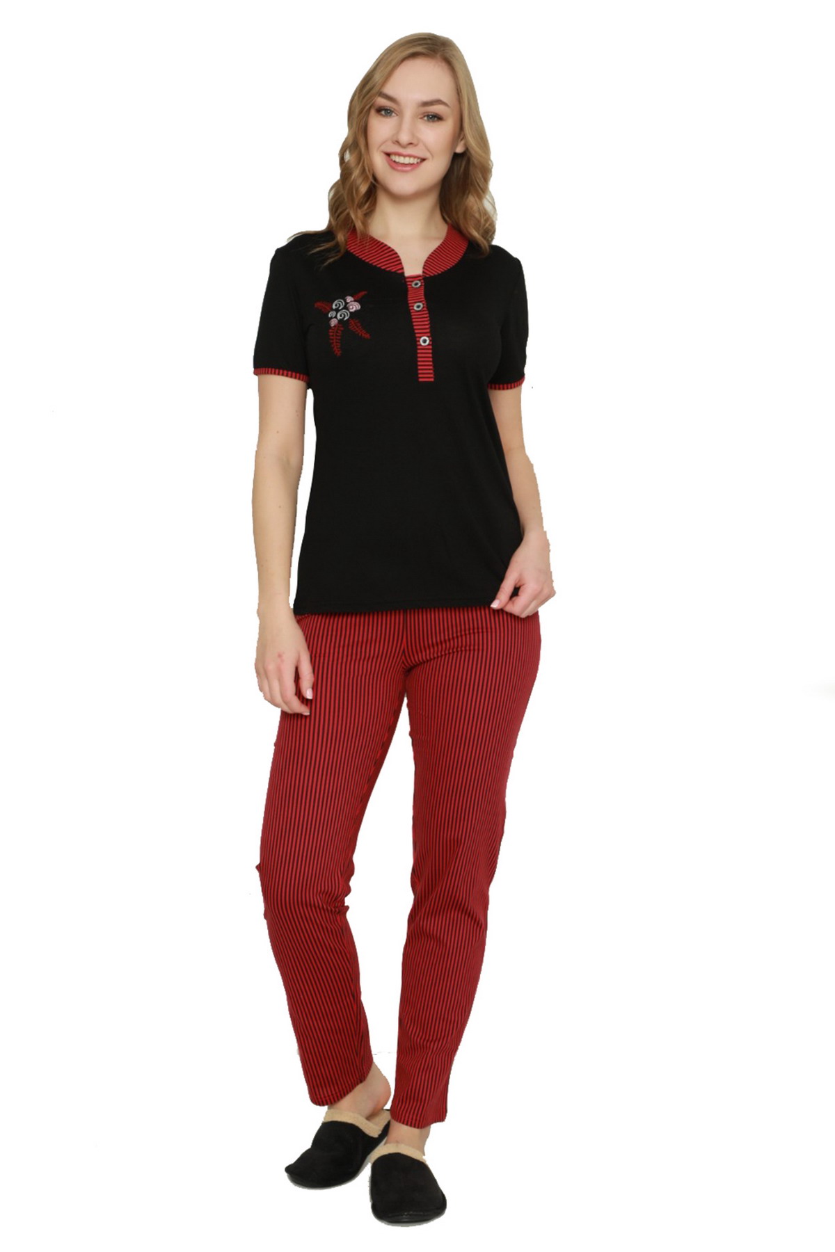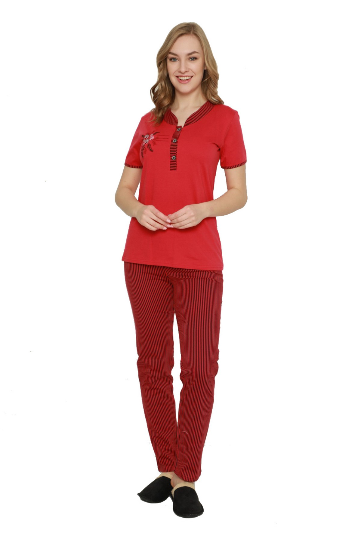 Kadın Kırmızı Renkli Kadın Kısa Kol Pijama Takımı - Erdeniz 0223 Bayan Pijama Takımı