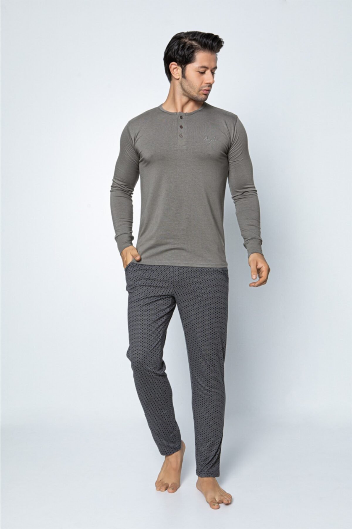 • Modal Kumaş Aydoğan 3883 Gri Renk Pijama Takımı - Uzun Kollu Erkek Pijama Takımı