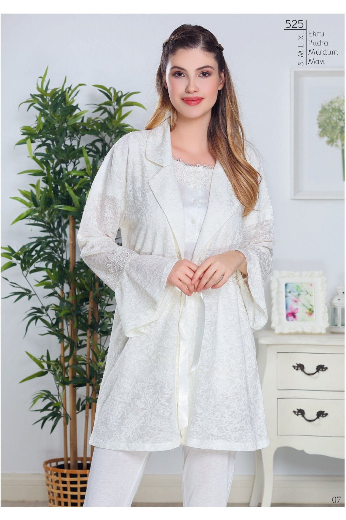 Sabahlıklı Lohusa pijama takımı, hamile pijama takımı, tuba 525 sabahlıklı 3'lü pijama takımı