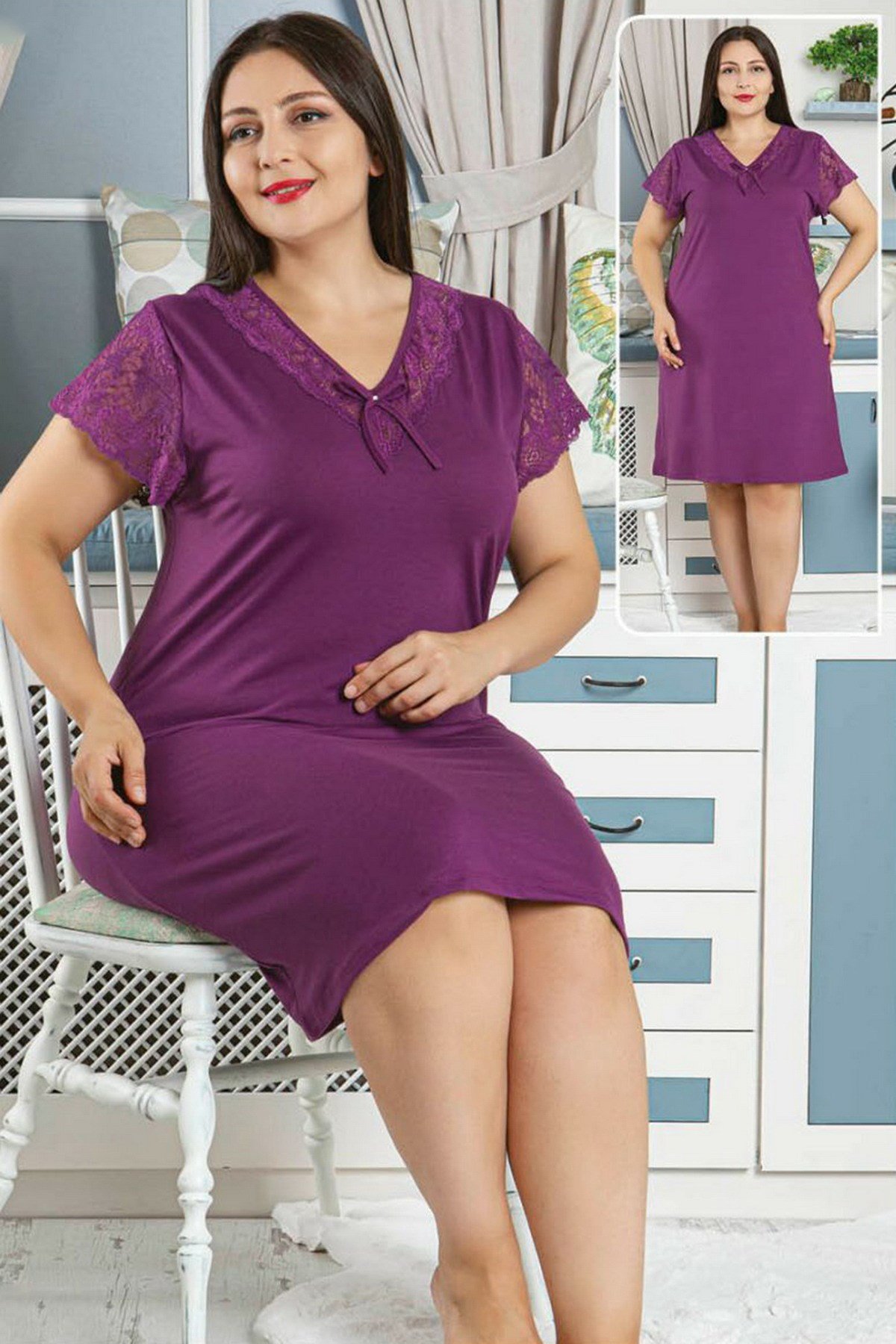 Battal Lila Renk Tunik - Jenika 45463 Büyük Beden Gecelik; Kumaşı % 90 pamuk, % 10 likra mal..