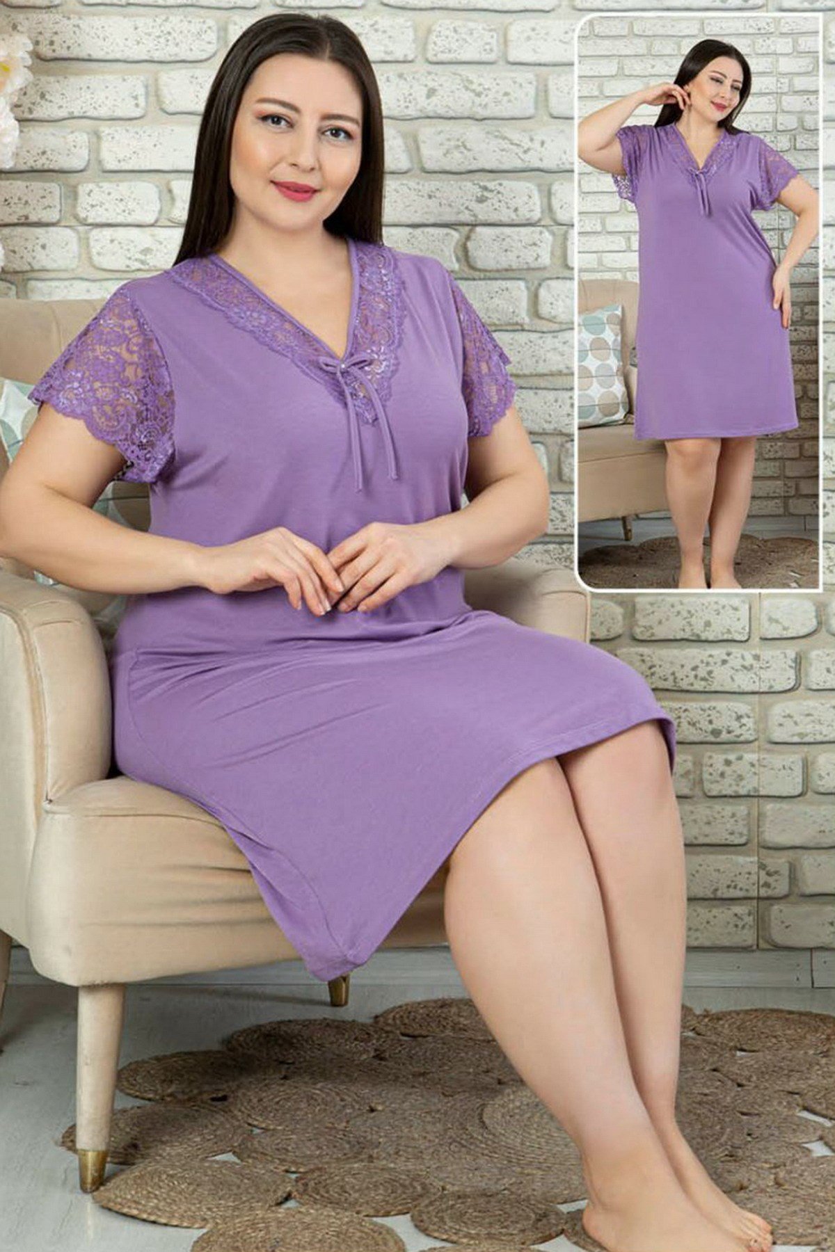 Battal Lila Renk Tunik - Jenika 45463 Büyük Beden Gecelik;