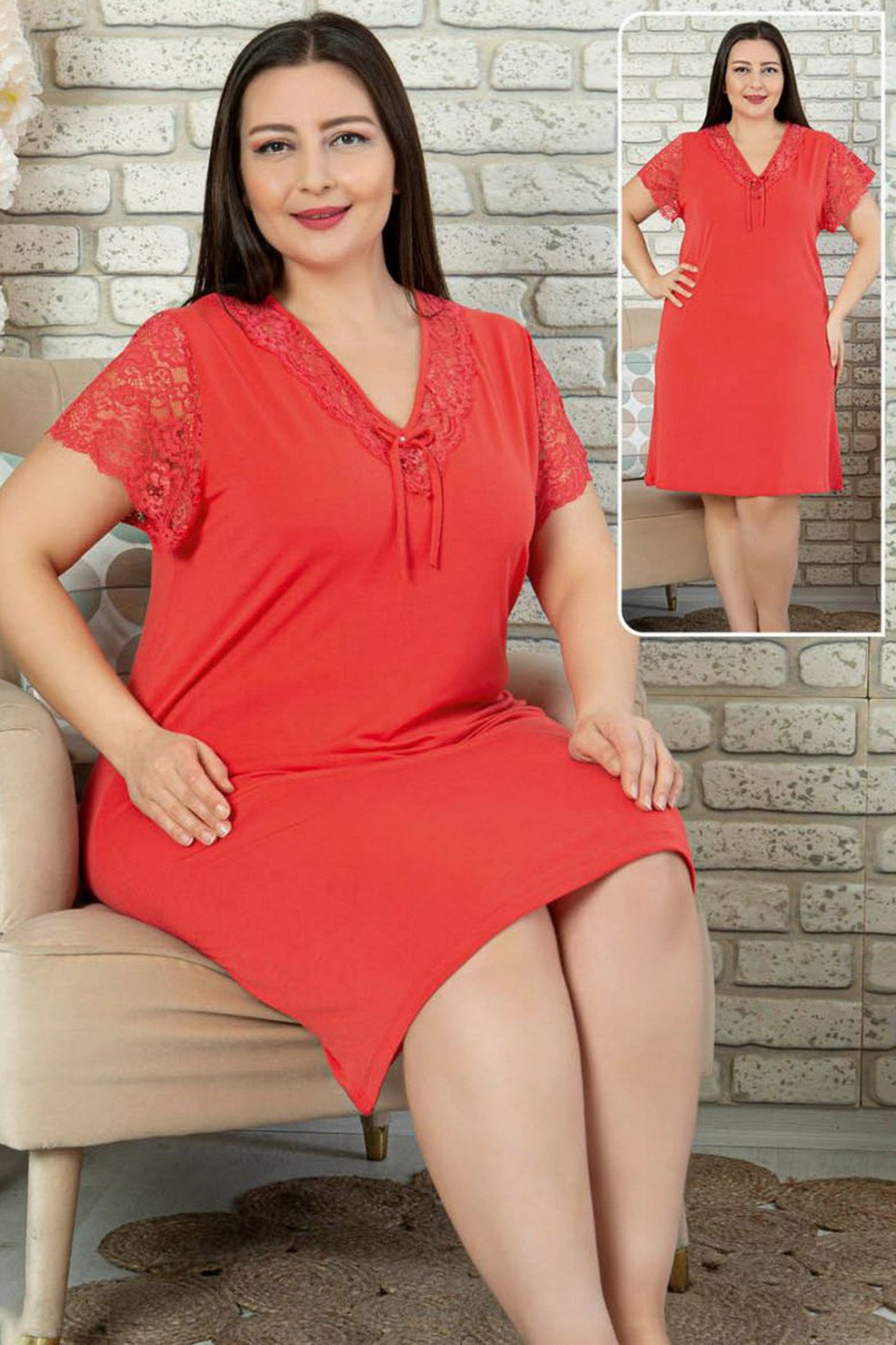 Jenika 45466 Battal Kırmızı Renk Tunik - Jenika Büyük Beden Gecelik