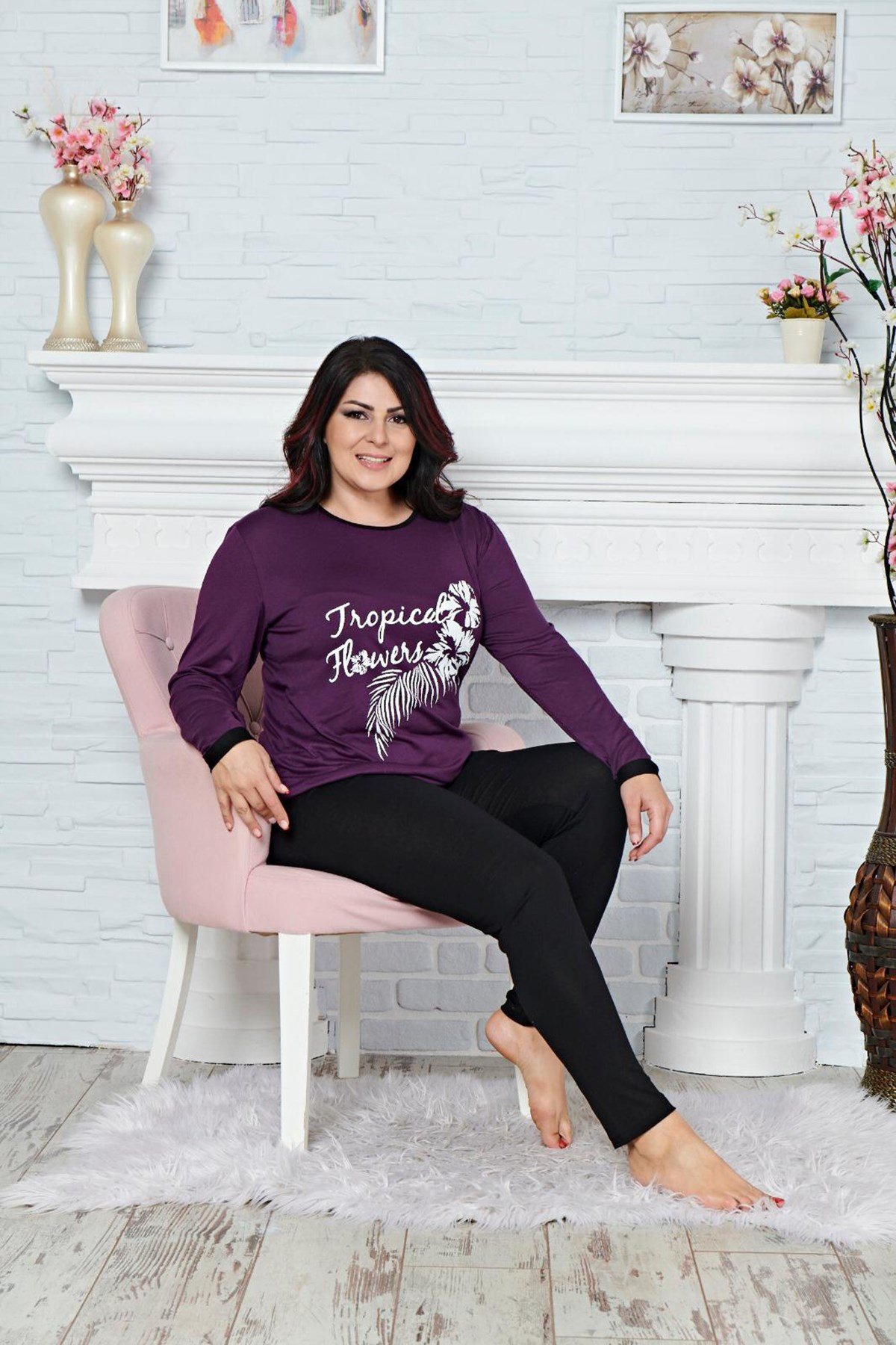 Kadın Büyük Beden 2 li Taytlı Pijama Takımı - Bellamood 1380 Battal Pijama Takımı
