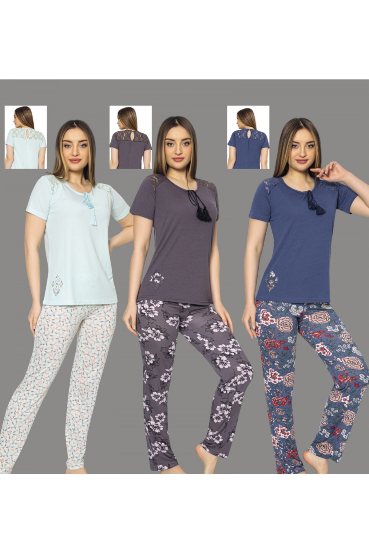 Kadın Gri Renkli Kadın Kısa Kol Pijama Takımı - Erdeniz 0222 Pijama TakımıM, L, XL ve 2XL beden..