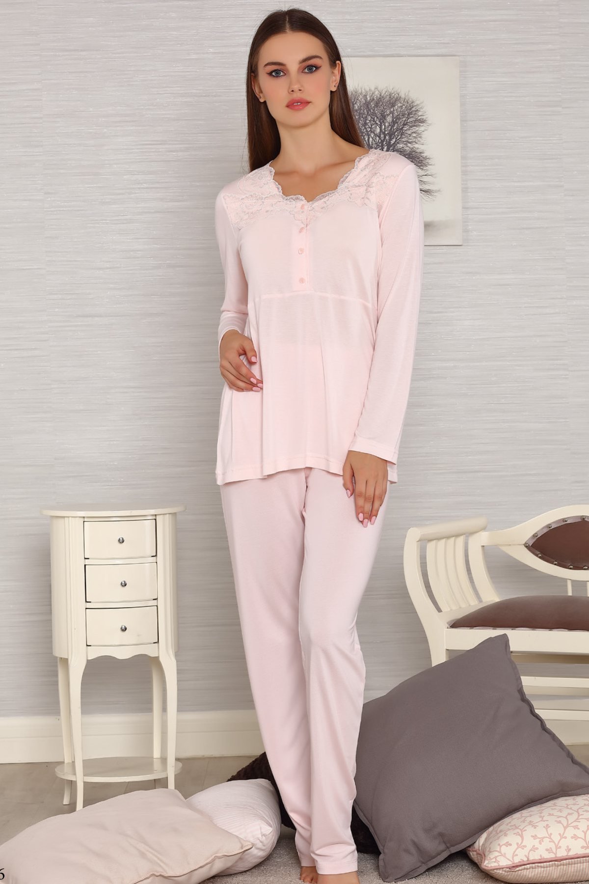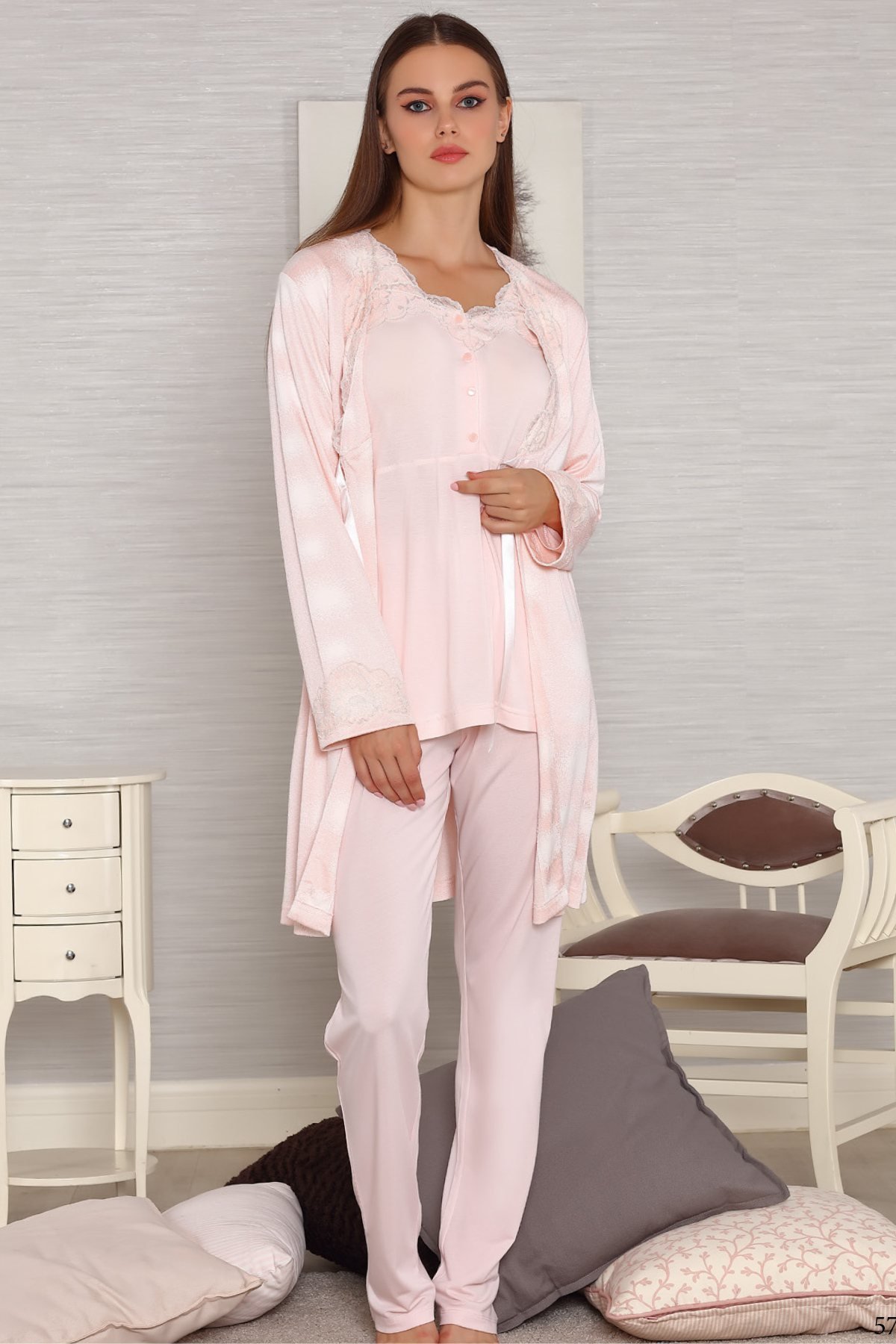 Tuba 562 - 3 lü Sabahlıklı Hamile Lohusa Pijama Takım, Sabahlıklı Hamile Pijaması
