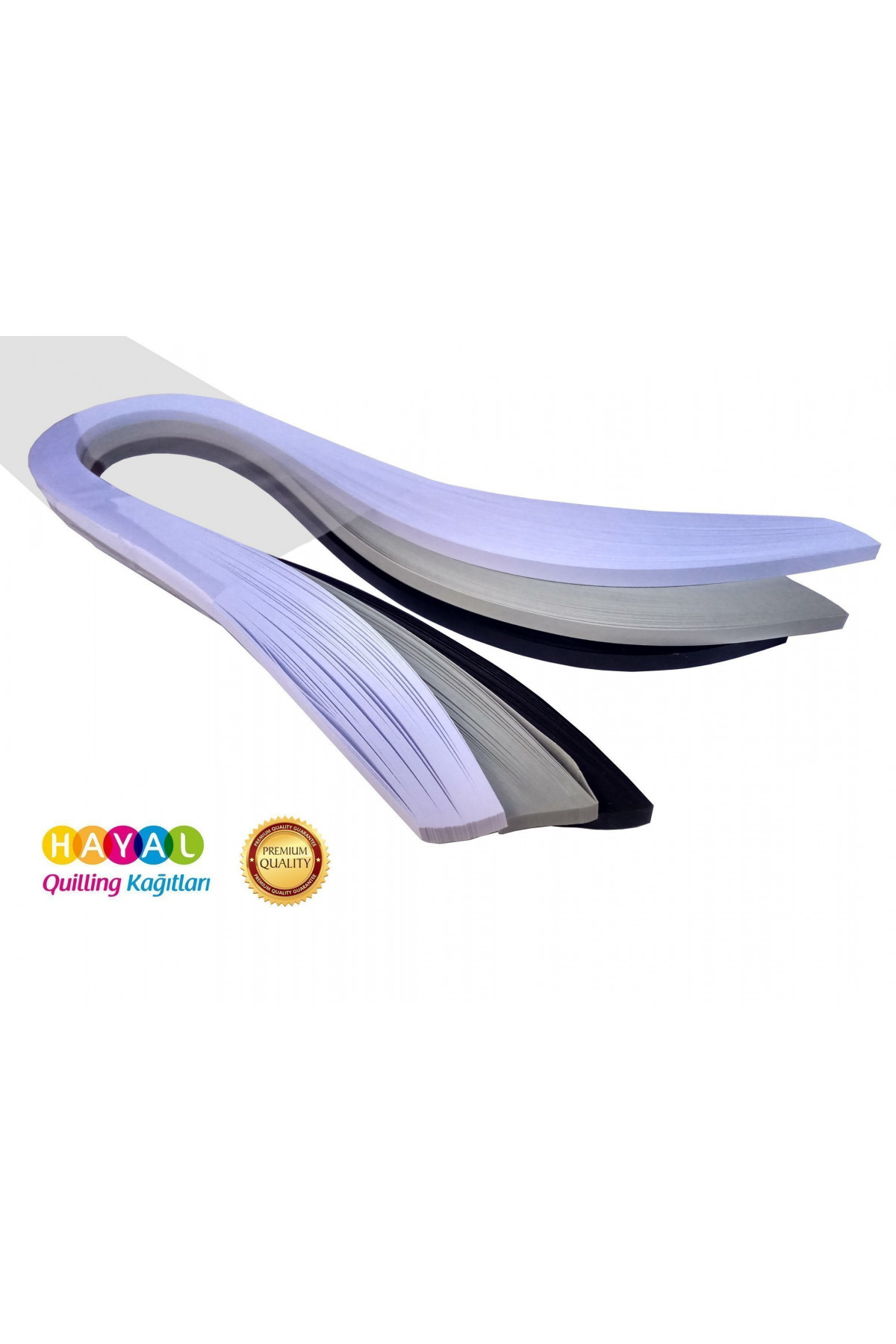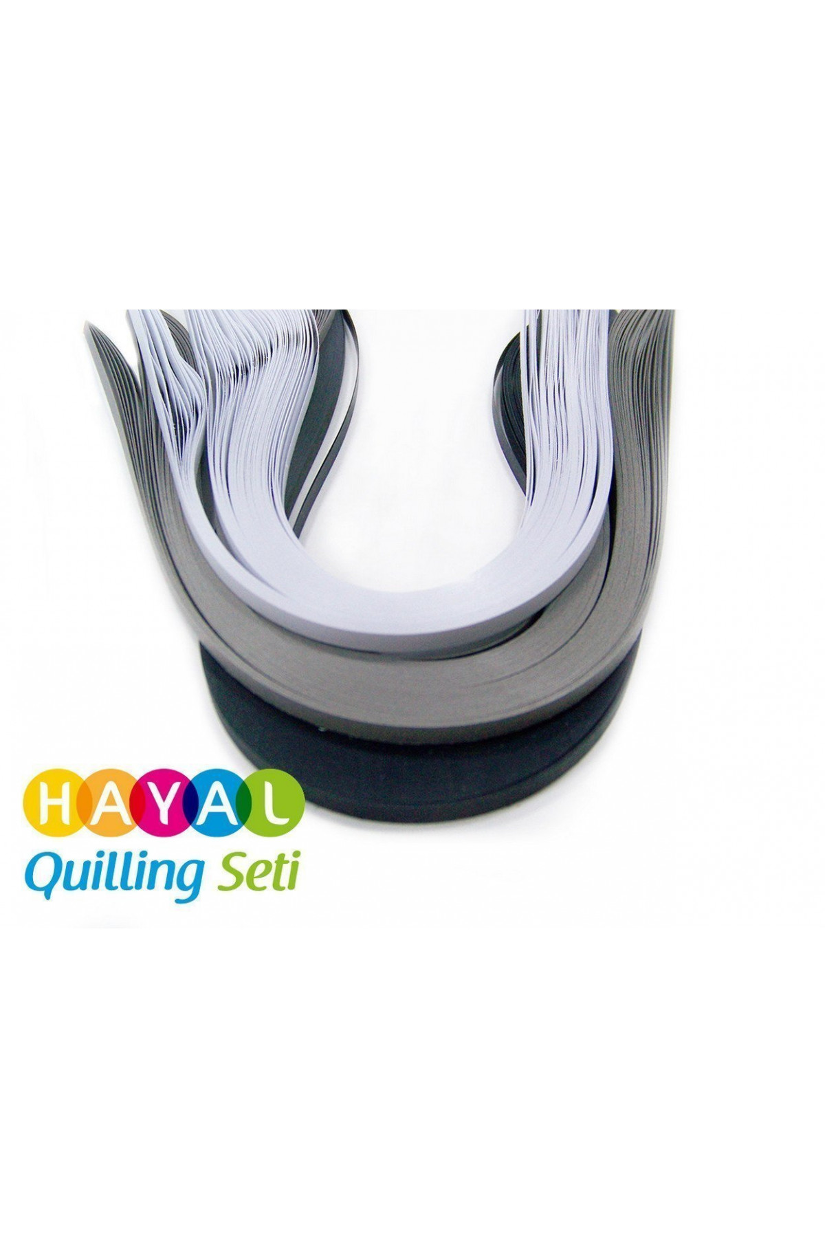 - 100 adet siyah, 100 adet beyaz ve 100 adet gri ekonomik quilling kağıdı seti.