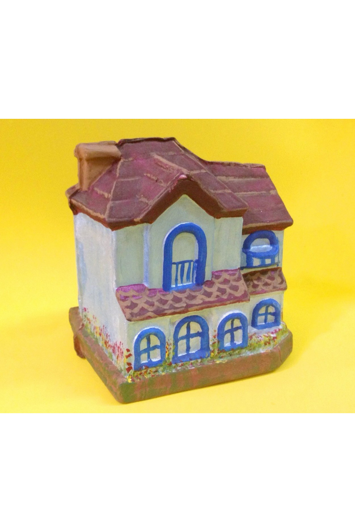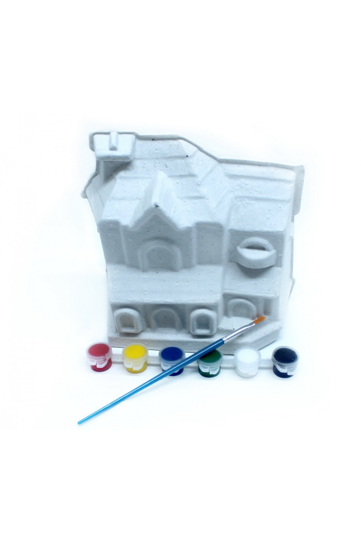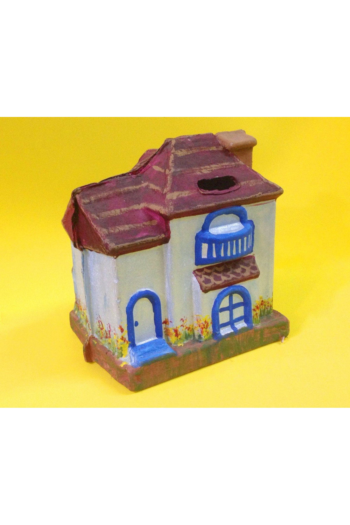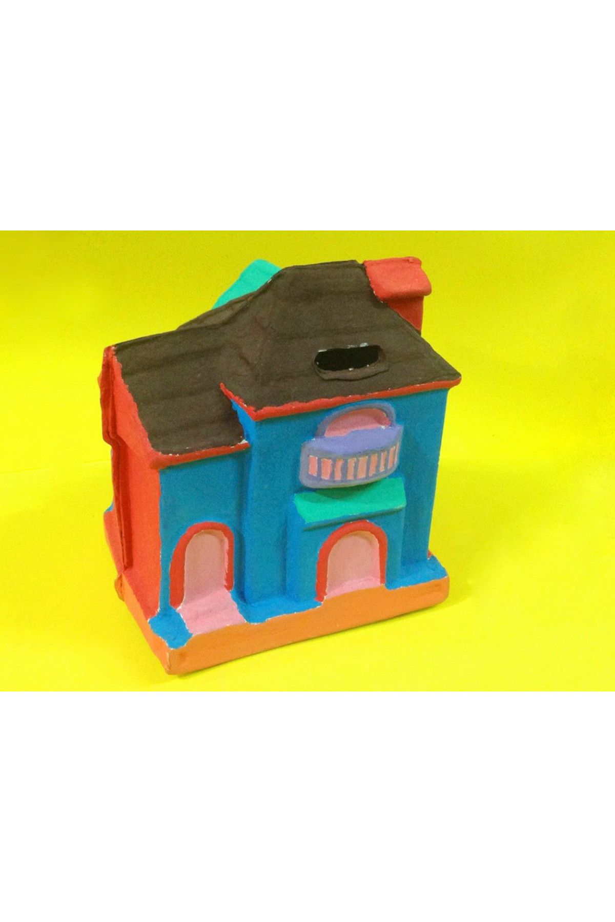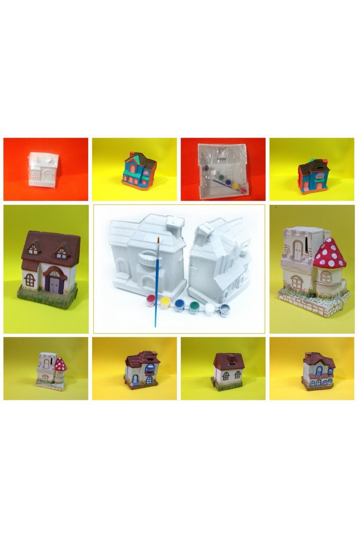 kartondan yapılmış boyama maket ev, ayrıca kumbara olarak ta kullanılabilmektedir.