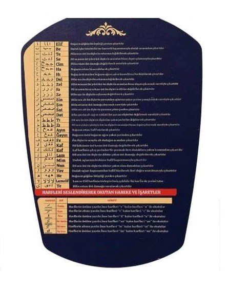 Arka tarafında harflerin seslendiriliş biçimleri ve ağız hareketleri anlatılmaktadır.