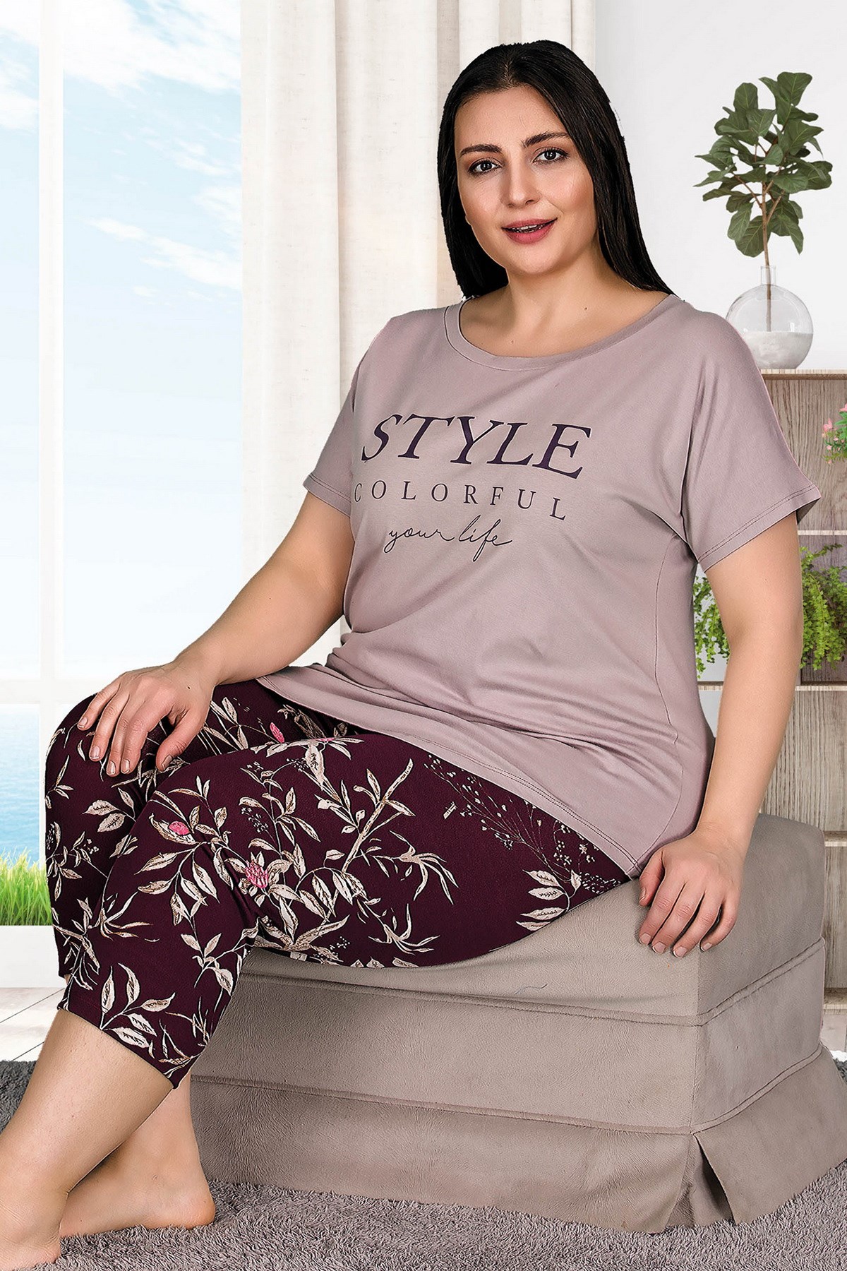 Lady 10512 Büyük Beden Çiçek Desenli Kapri Pijama Takımı