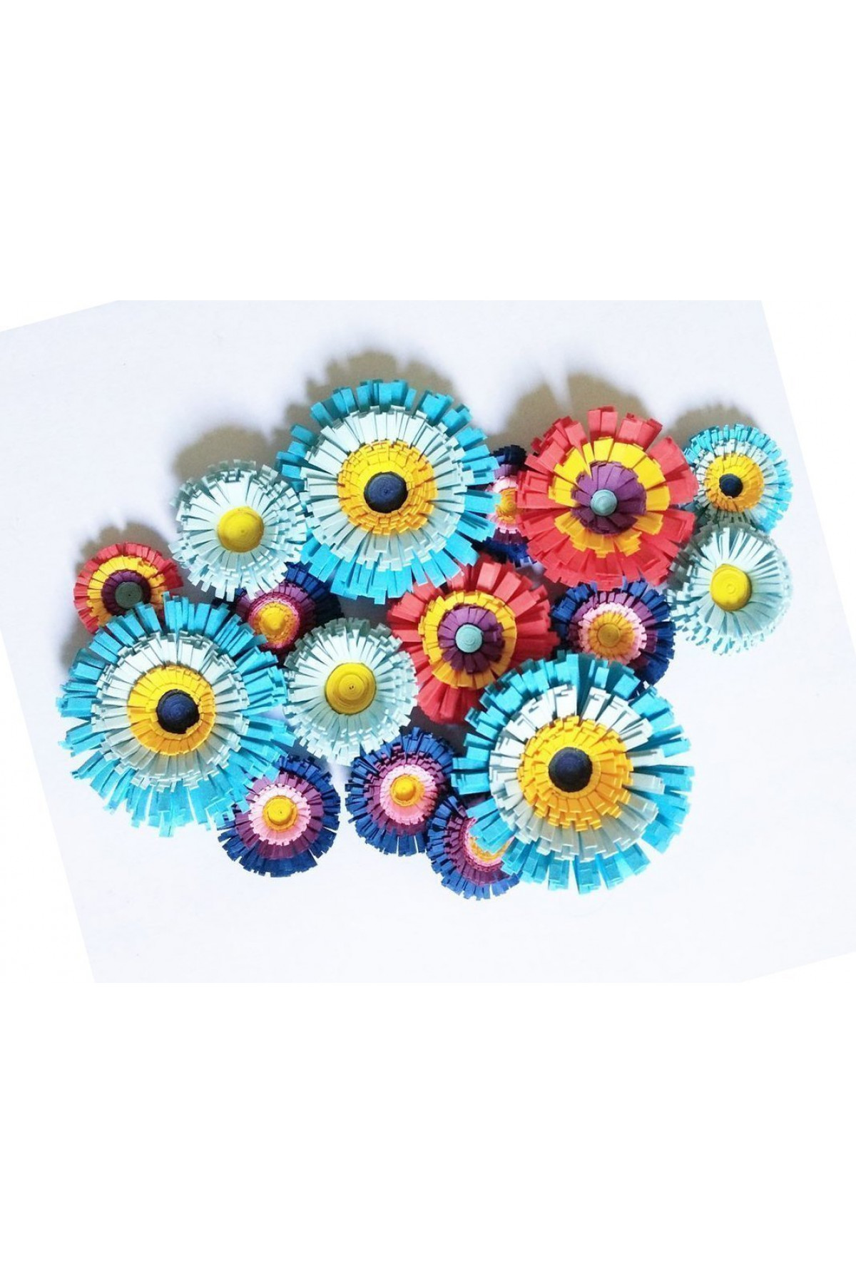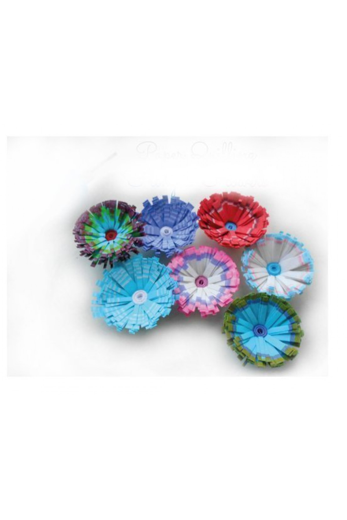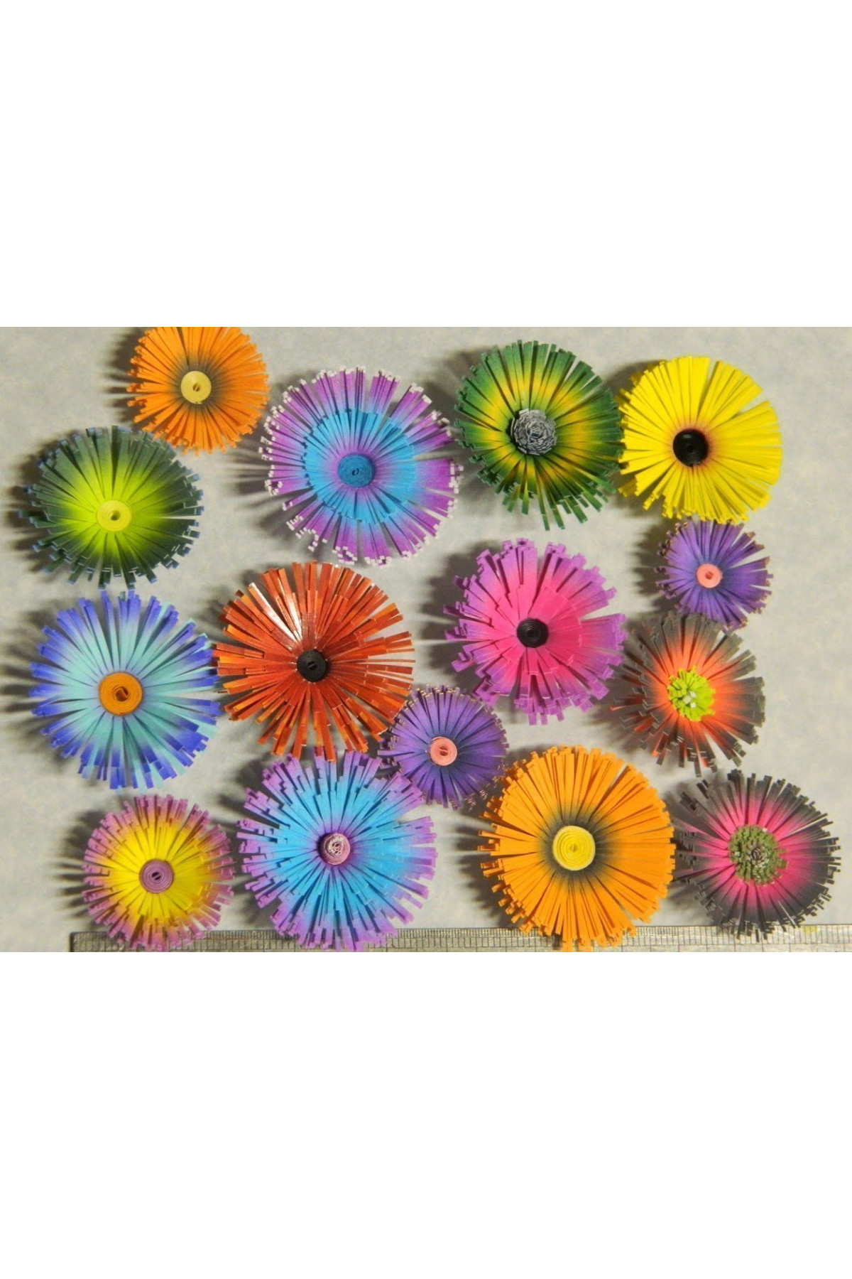 Renk Geçişli, Çizgili Quilling kağıtları ile resimdeki gibi püsküllü ve yapraklı çiçek modellerini rahatlıkla yapabilirsiniz.