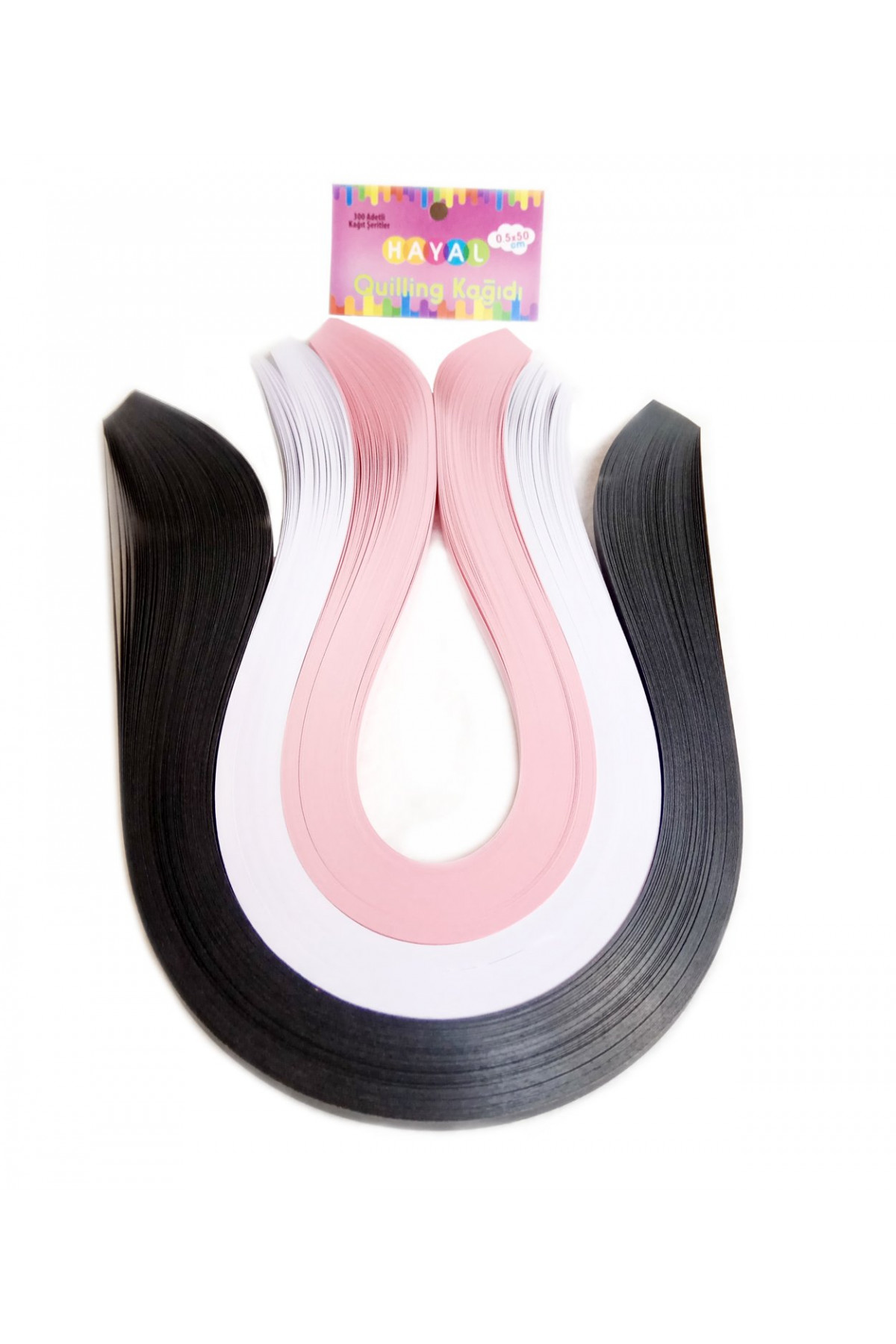 Quilling Kağıdı - Siyah, Beyaz ve Pembe 300'lü