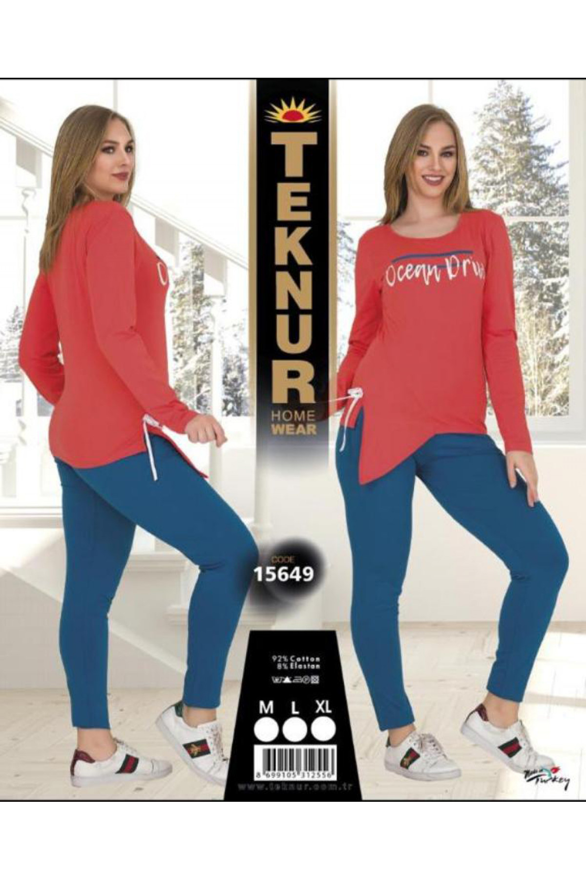 Teknur 15649 Uzun Kollu ve Taytlı, Pamuk Pijama Takımı